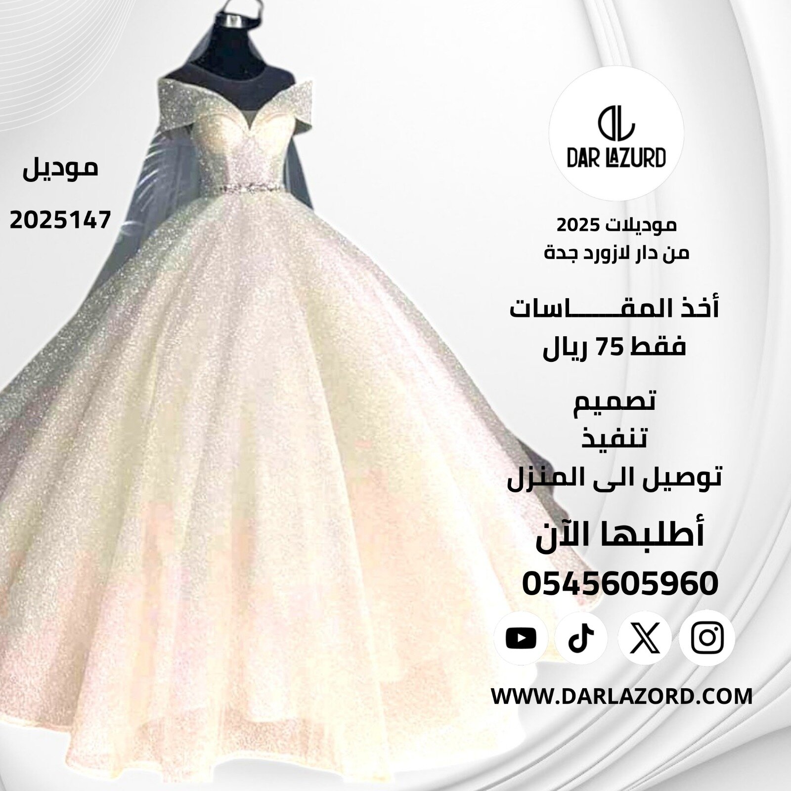 في دار أزياء لازورد، نعلم أن فستان الزفاف هو الجزء الأهم في يومك الخاص، ولذلك نقدم لكى تصاميم فاخرة تجمع بين الجودة العالية والتفاصيل الدقيقة التي تضيف لمسة من الجمال والتفرد. نحن نختار أفضل الأقمشة مثل الدانتيل والساتان لنضمن لكى إطلالة أنيقة ومميزة في يومك الكبير. سواء كنتى تفضلين التصاميم التقليدية أو العصرية، لدينا الخيار الأمثل لكى. اتصلي بنا الآن لاختيار فستان الزفاف الذي سيجعل يومك أكثر تميزًا.