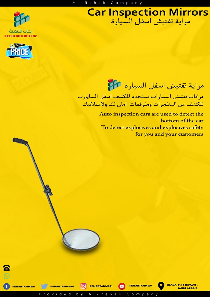 مرايا للكشف أسفل السيارة، مزودة بعجل لسهولة الحركة مع وسيلة اضاءة