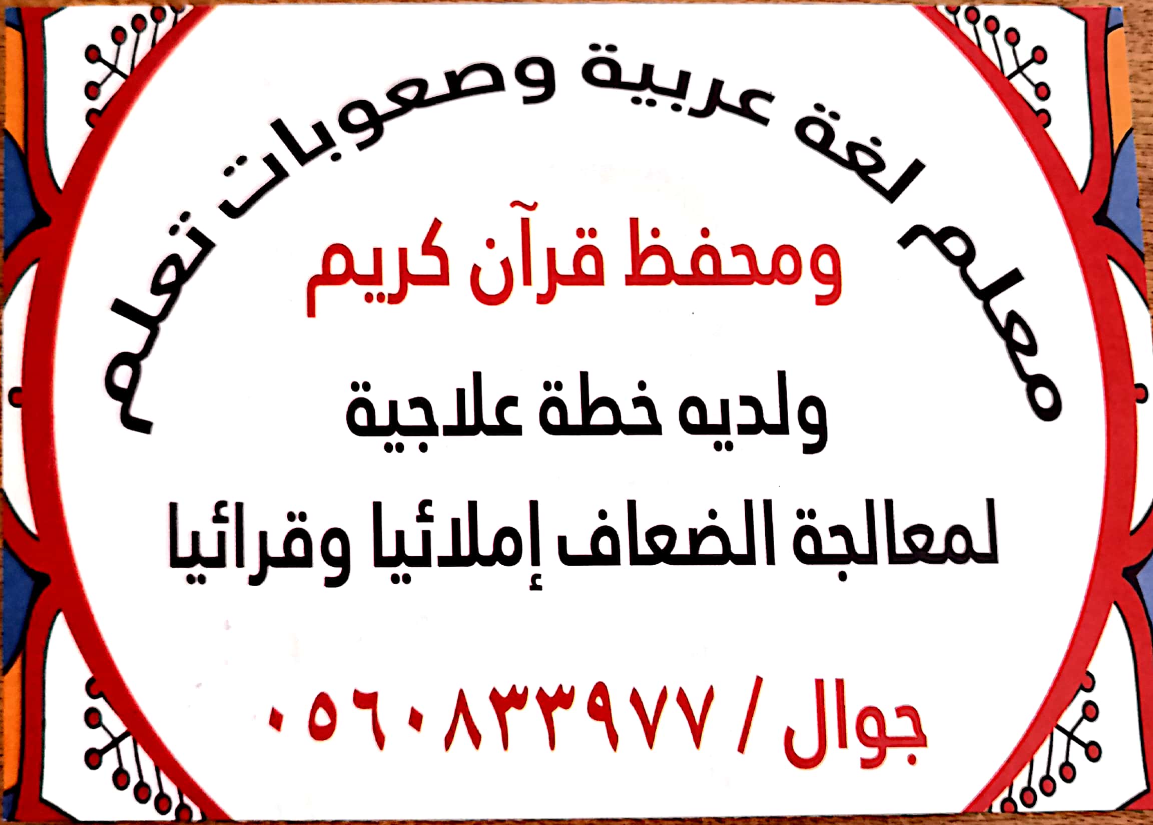 معلم صفوف أولية وتأسيسبواسطة سيد / 18 نوفمبر، 2024 اتصل : 0966560833977 واتس : 96560833977 معلم صفوف أولية وتأسيس خبرة مع خطة علاجية لمعالجة الضعاف قراءة وإملاء جدة 0560833977 اسم صاحب الأعلان: محمد