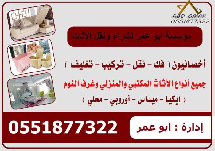 غرف نوم مكيفات مطابخ ثلاجات غسالات افران مكاتب طاولات طعام شاشات مجالس كنب ونقوم بخدمة نقل العفش 0552160411 مع الفك