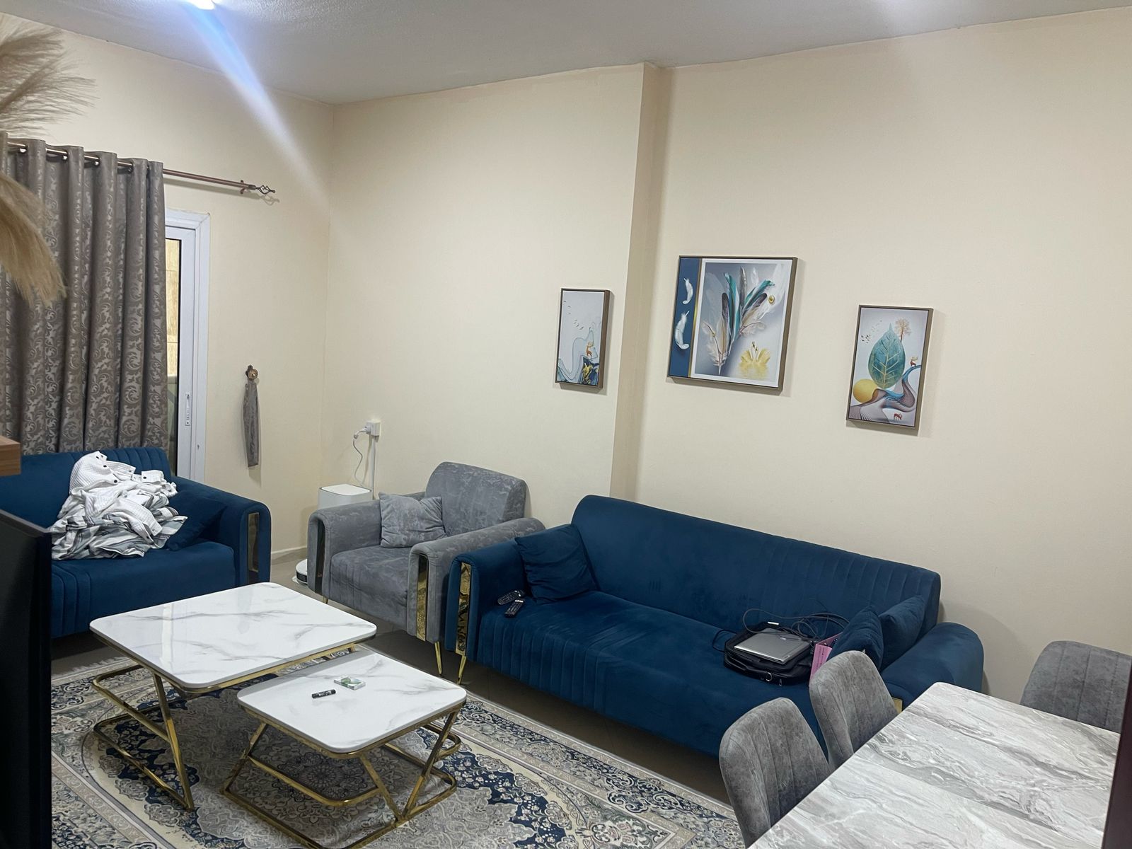 غرفة وصالة للإيجار في الحميدية، جديدة وأول ساكن، تضم 2 حمام، بلكونة، جيم ومسبح. السعر: 38,000 درهم على 4 دفعات.