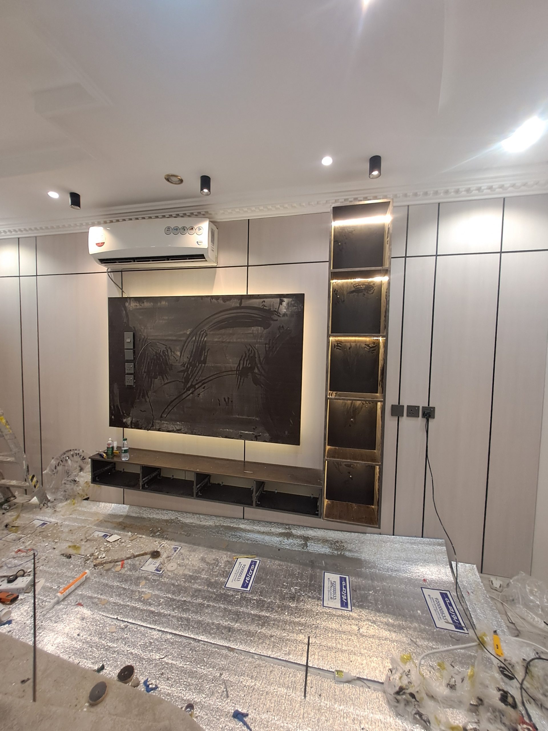 معلم ديكورات ورق جدران دهانات فوم بديل الرخام بديل الشيبورد بديل الخشب باركية نعلات مرايات رفوف جبس بورد ديكور شاشات