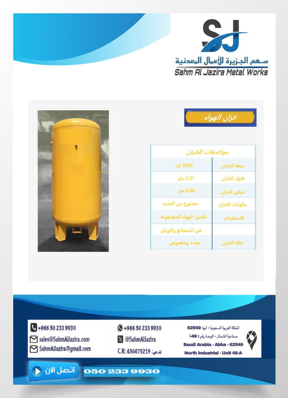خزان هواء سعة 1000 لتر مستعمل مجدد للبيع الخزان موجود في مدينة أبها للاستفسار والطلب التواصل على الواتساب اسم صاحب