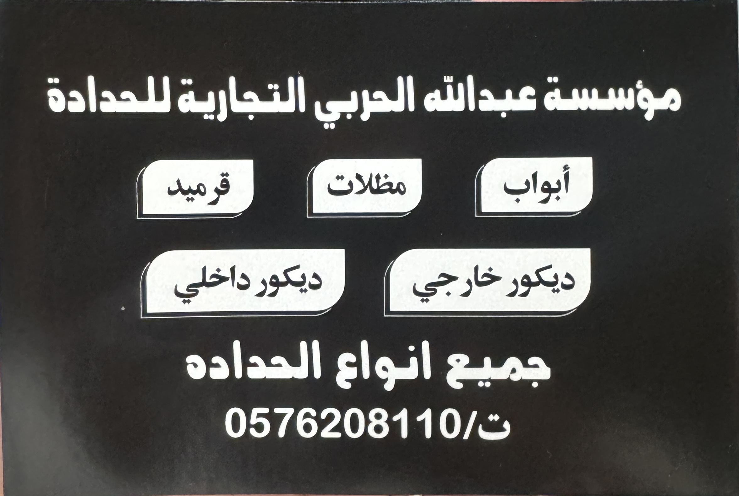السلام عليكم ورحمه الله وبركاته نحن شركة حدادة نقوم بكافة انواع الحدادة وصناعة الحديد من ابواب – مظلات – دربزين