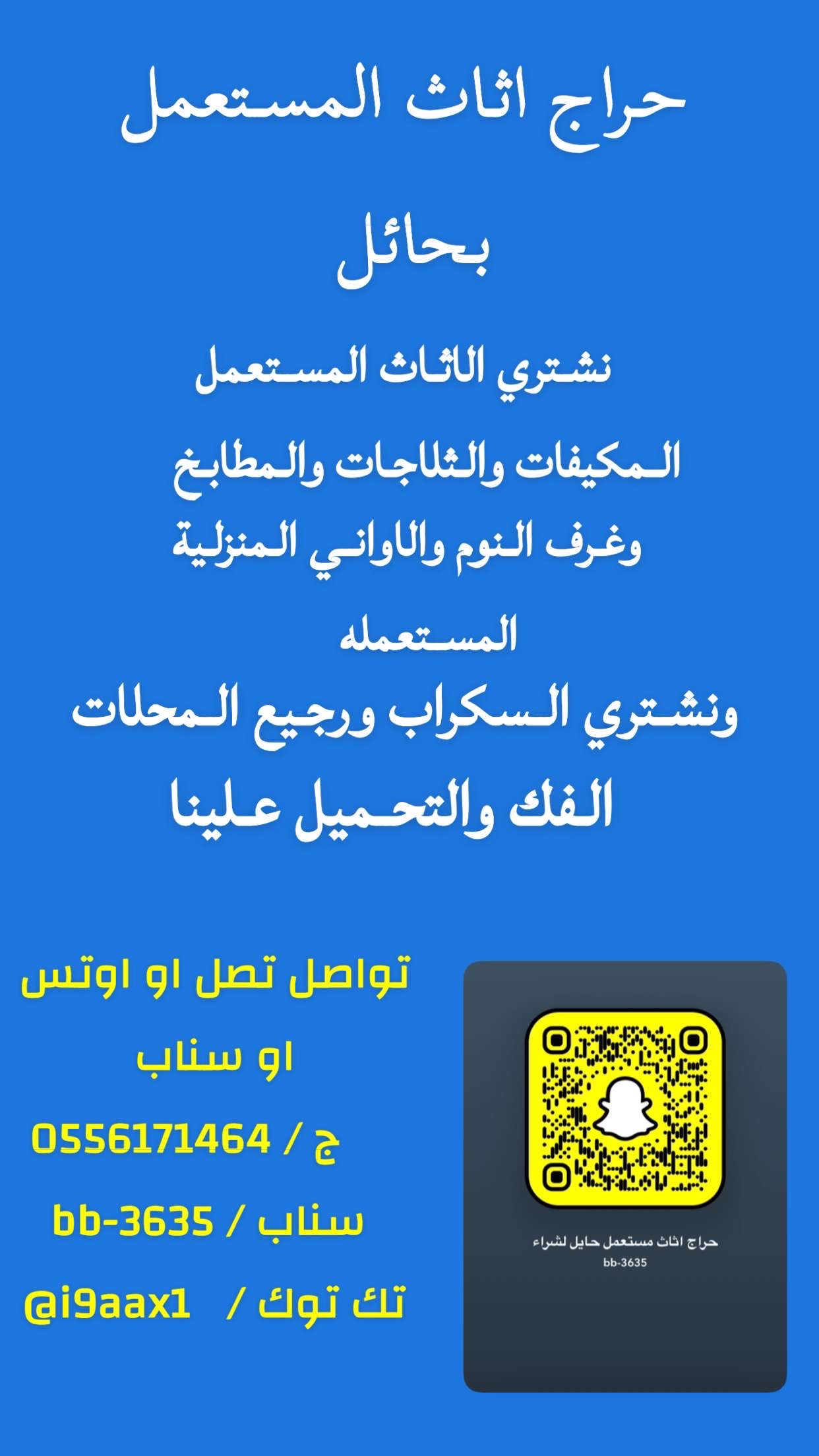 حراج حائل تبع اثاث مستعمل نشتري جميع الاثاث المنزلي من مكيفات ثلاجات مطابخ اواني منزليه قدور عفش كامل حديد سكراب