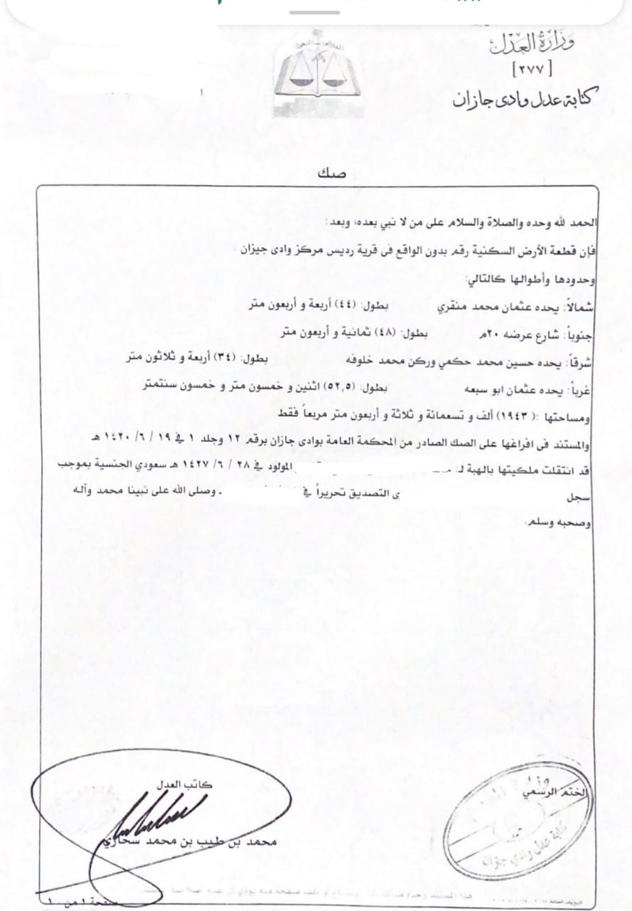 قطعة أرض بصك سكني للبيع أو الاجار بالمنشأة المقامه عليها مساحتها 1943 م٢ يميزها موقعها التجاري والواقع على شارع عرض60م٢