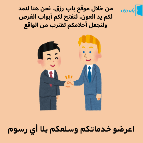 هدفنا مساعدة البائعين على نشر منتجاتهم على موقع باب رزق للاعلانات اسم صاحب الأعلان: باب رزق