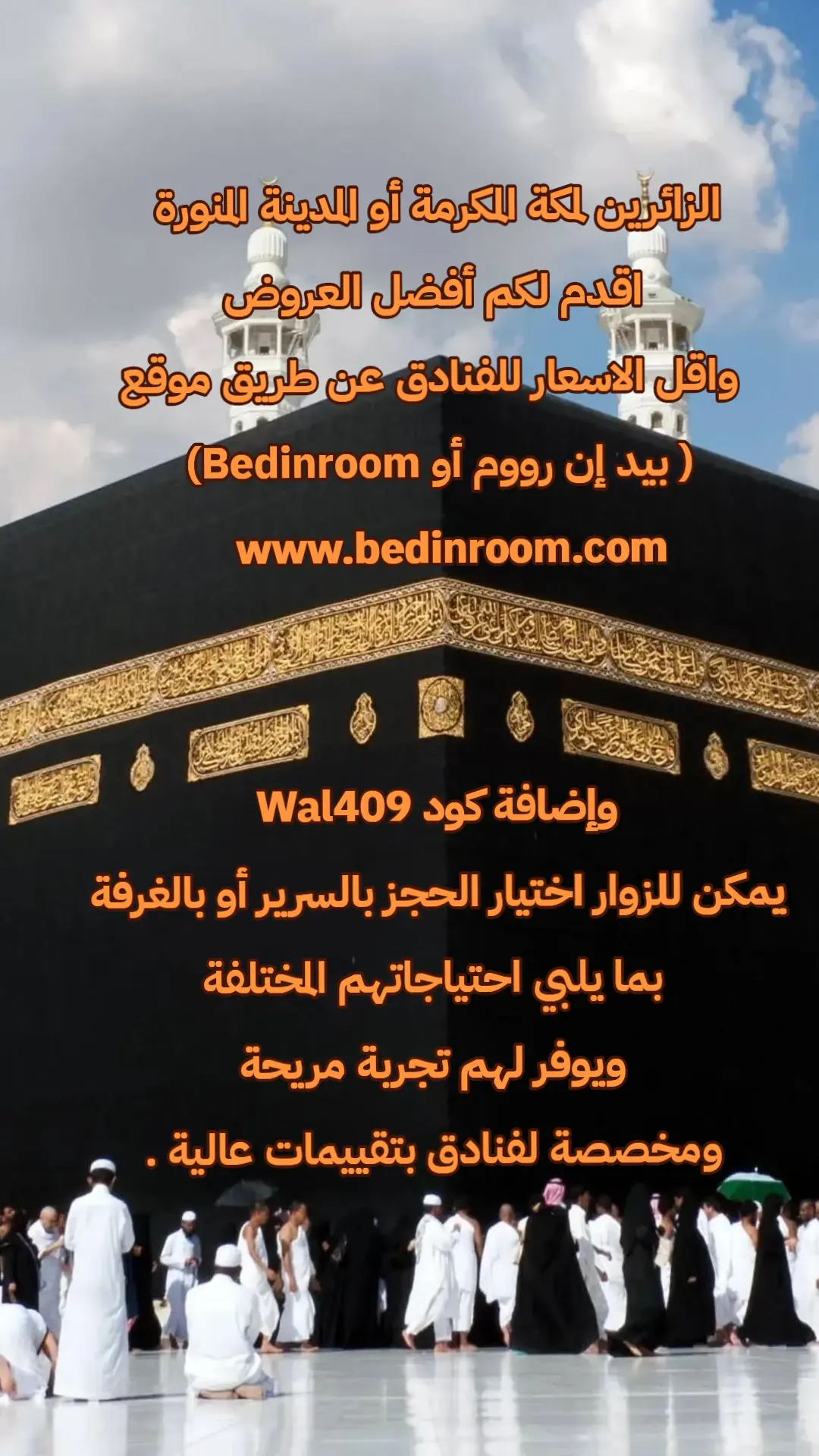 الزائرين لمكة المكرمة أو المدينة المنورة اقدم لكم أفضل العروض واقل الاسعار للفنادق عن طريق موقع ( بيد إن رووم