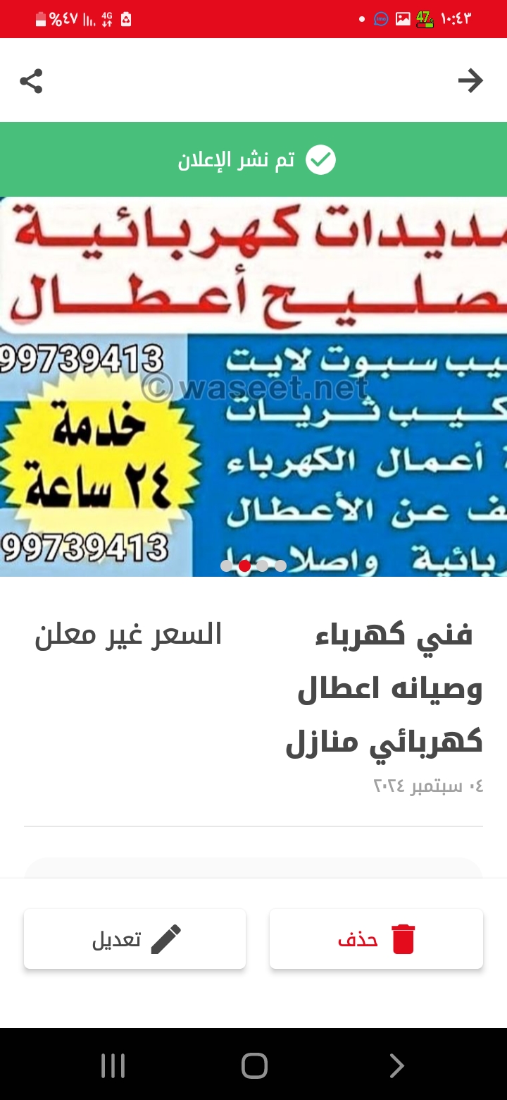 جميع اعمال الكهرباء والستالايت . اسم صاحب الأعلان: ابواسلام كهربائي الكويت