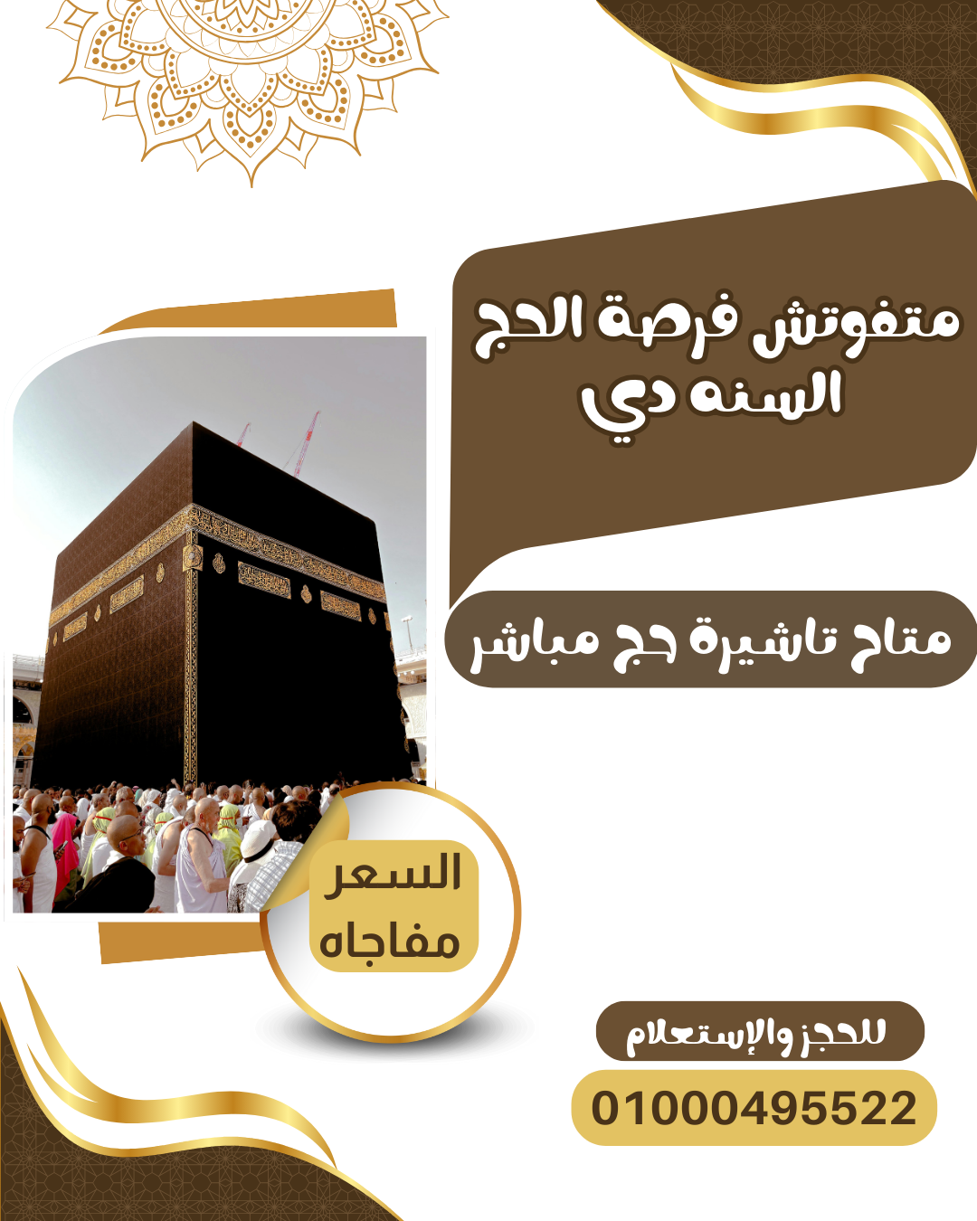 متاح تاشيرات حج مباشر للمصريين والدفع بعد الموافقه التنفيذ خلال 48 ساعه المطلوب اصل الجواز وصورة شخصيه وصورة البطاقه ورقم