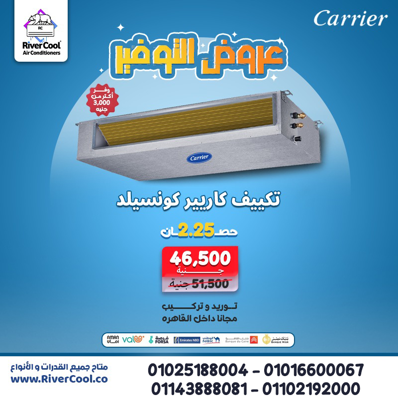 تكييف كاريير كونسيلد من ريفر كول بيقدم لك تبريد عالي وكفاءة ممتازة تصميمه مخفي عشان يحافظ على شكل المكان فريون […]