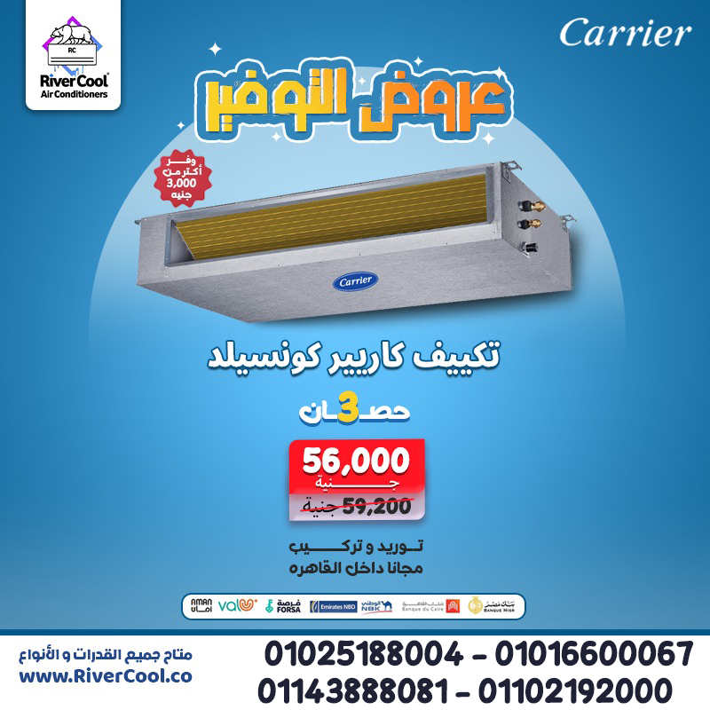 عايز تكييف يبرد المكان كله بشكل متساوي وهادي ومن غير ما يأثر على شكل المكان؟ تكييف كاريير كونسيلد من ريفر