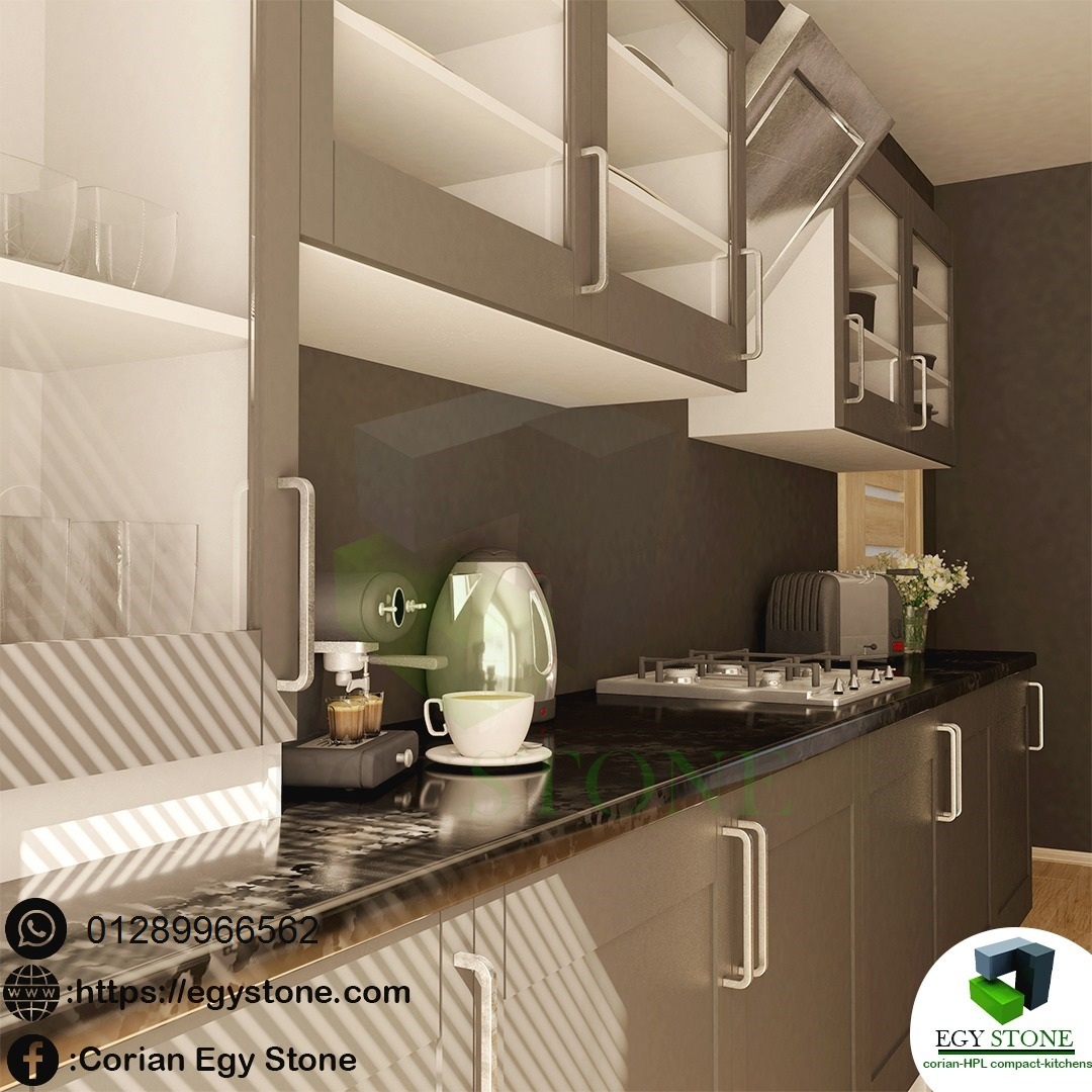 نقدم لكم افضل انواع خامات الكوريان من شركتي Hanex-Tristoneوالمعروفة عالميا بجودتها ومتانتها في تصميم المطابخ العصرية مميزات خامات الكوريان *سطح