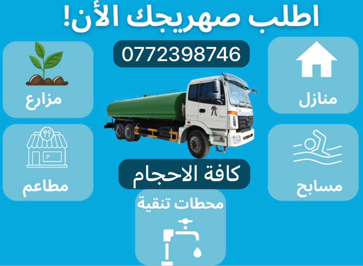 توزيع ماء صالحه للشرب كافة الاحجام داخل عمان الغربيه اسم صاحب الأعلان: صهريج ماء
